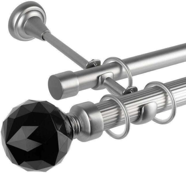 Cristal Noir Dupla Függönyrúd - 360 cm - Ezüst