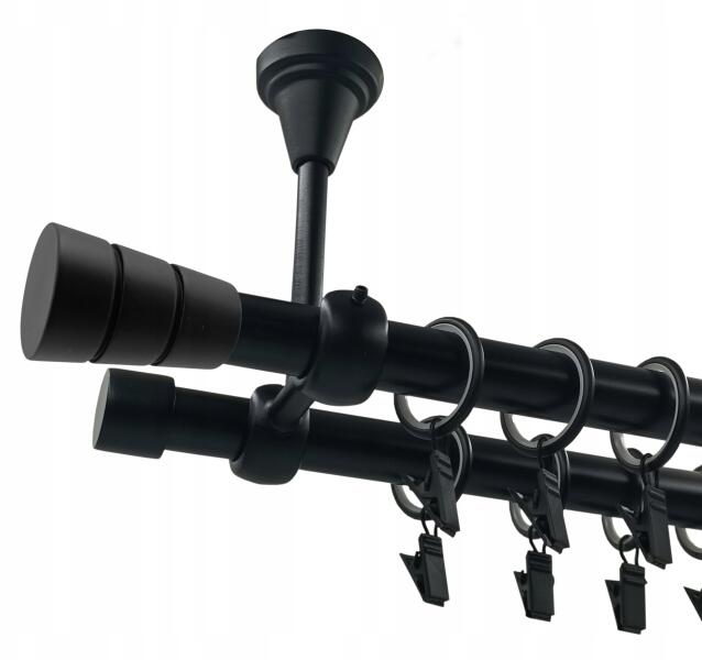 ESTAdeco Függönysín Mennyezeti Kettős fém fekete matt 19+19 mm 180 cm henger basic (karnisz SUFIT II 19 Czarny WALEC BASIC 180cm)ALLEGRO