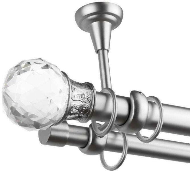Dupla Függönyrúd Szett Elegáns Kristály Díszekkel - 360 cm Ez a dupla függönyrúd szett tökéletes választás elegáns és modern otthonokba. A 360 cm-es hosszúságú rúd elegendő helyet biztosít akár nagyobb ablakokhoz is. A krómozott fém kivitel időtálló és könnyen tisztítható, míg a gyönyörű kristály díszek elegáns megjelenést kölcsönöznek a függönyöknek. Jellemzők:Hossz: 360 cm Anyag: Krómozott fém Átmérő: 25/19 mm Díszek: Elegáns kristály gömbök Tartalmazza: Minden szükséges szerelési tartozékot (PVC gyűrűk, kapcsok) Könnyű felszerelés: A szett minden szükséges tartozékot tartalmaz a gyors és egyszerű felszereléshez. Robusztus kivitel: A tartós fém konstrukció biztosítja a hosszú élettartamot és a stabil függönytartást. A csomag tartalma: Két darab 360 cm-es függönyrúd Kristály díszek PVC gyűrűk és kapcsok Szerelési útmutató Megjegyzés: A megadott méret nem tartalmazza a díszfejek hosszát (7 cm). 300 cm feletti rudaknál középen egy kötés található.