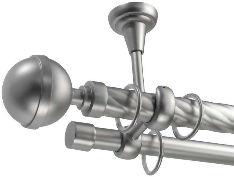 Elegáns, dupla csavart függönyrúd: Tökéletes választás otthonába ✨ Ez a dupla csavart függönyrúd 25/19 mm-es átmérőjű csövekkel rendelkezik, elegáns ezüst színben. Ideális választás modern és klasszikus enteriőrökhöz egyaránt. A 400 cm-es hosszúságú rúd elegendő helyet biztosít akár nagyobb ablakokhoz is. Jellemzők:Dupla rúd: Két függöny vagy sötétítő függöny egyidejű akasztására alkalmas. Csavart design: Egyedi és stílusos megjelenést kölcsönöz az ablaknak. 25/19 mm átmérő: Stabil és tartós konstrukció. Ezüst szín: Tökéletesen illeszkedik a legtöbb otthoni stílushoz. Mennyezeti rögzítés: Könnyű és biztonságos felszerelés. Teljes felszerelés: Minden szükséges tartozék a csomagban található (PVC gyűrűk, kapcsok). 7 cm-es díszvégek: Elegáns megjelenés. Fontos megjegyzés: A 300 cm-nél hosszabb rudaknál középen egy kötés található, ami a stabilitást biztosítja. A megadott méret nem tartalmazza a díszfejek hosszát.