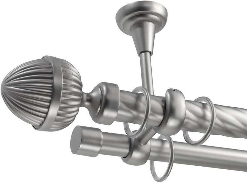 Pinecone Dupla Csavart Fém Kárpitlevél Rúd - Ezüst - 360 cm