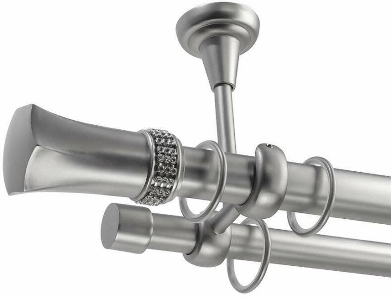 Pluto Dupla Függönyrúd - Fém, Ezüst - 360 cm