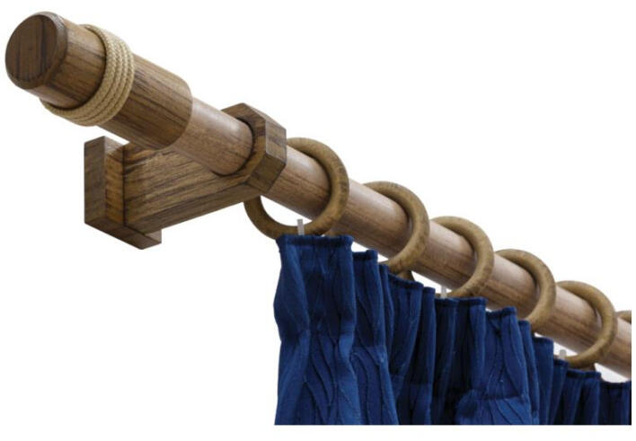 28 mm vastag tömröfa rúdkarnis szett - rustical színben A szett tartalma: - 1 db 28 mm-es fa rúdkarnis a kiválasztott hosszban, rustical színben (150 cm, 200 cm vagy 250 cm) - 2 db fa végzáró zsinórral díszítve - 2 db szimpla fa karnis tartó, mely szerelhető oldalfalra vagy mennyezetre is (hossza: kb. 11 cm; a függöny síkja a faltól mérve kb. 9 cm-re esik). A 250 cm-es karnishoz 3 db tartó jár! - fa karikák műanyag ráncszedő kampóval a karnis hosszának megfelelően 10 cm-ként (fém karniscsipesz külön vásárolható hozzá)
