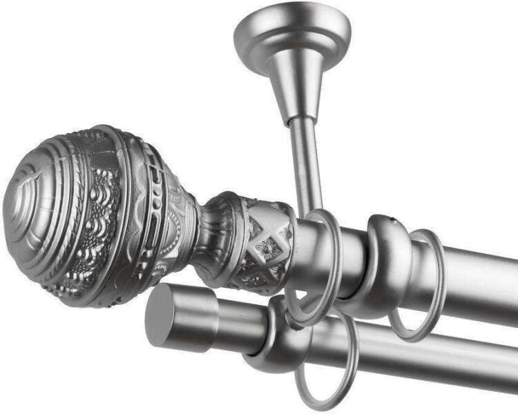 Venetia Dupla Függönyrúd - Fém, Ezüst - 400 cm